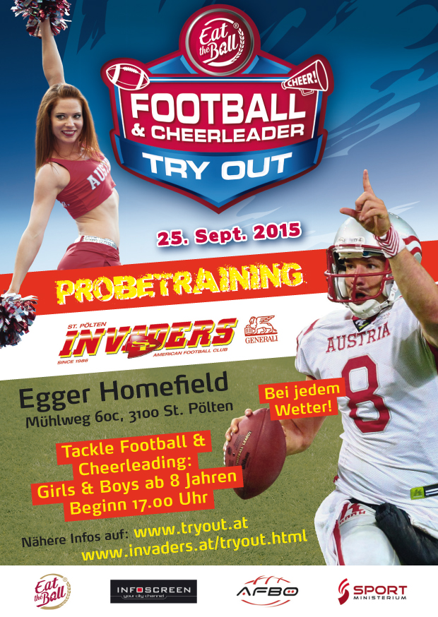 Wieder einmal laden die Generali Invaders St. Pölten zusammen mit den Cheer'in Vaders euch ein die beiden geilsten Sportarten der Welt, American Football und Cheerleading hautnah zu erleben und auszuprobieren.
