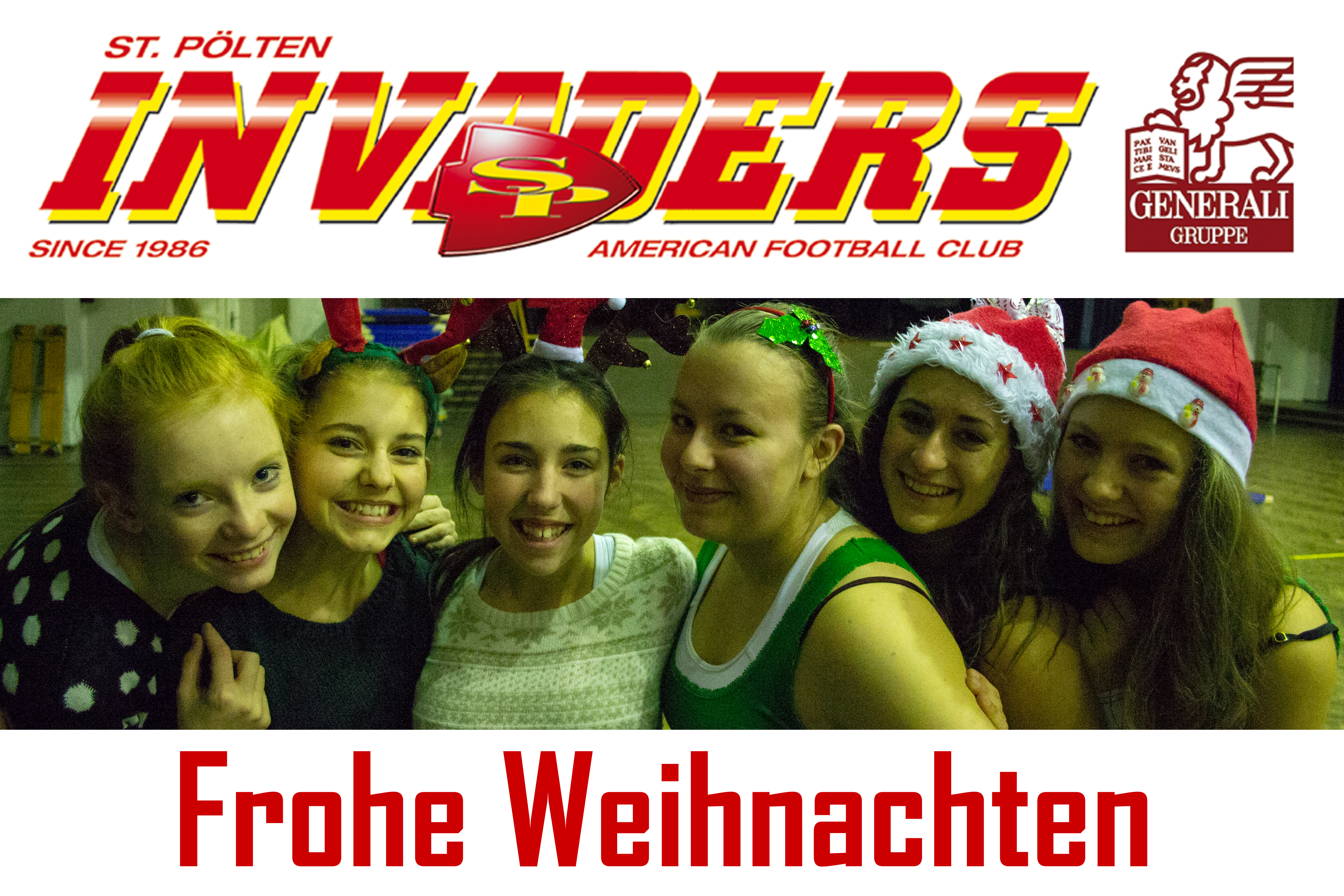 Die Generali Invaders wünschen allen Fans, Freunden, Bekannten, Eltern, Spielern und Cheerleadern und auch allen sonstigen Unterstützern ein gesegnetes Weihnachtsfest und einen schönen Jahreswechsel in ein hoffentlich wieder so erfolgreiches Jahr 2014!
