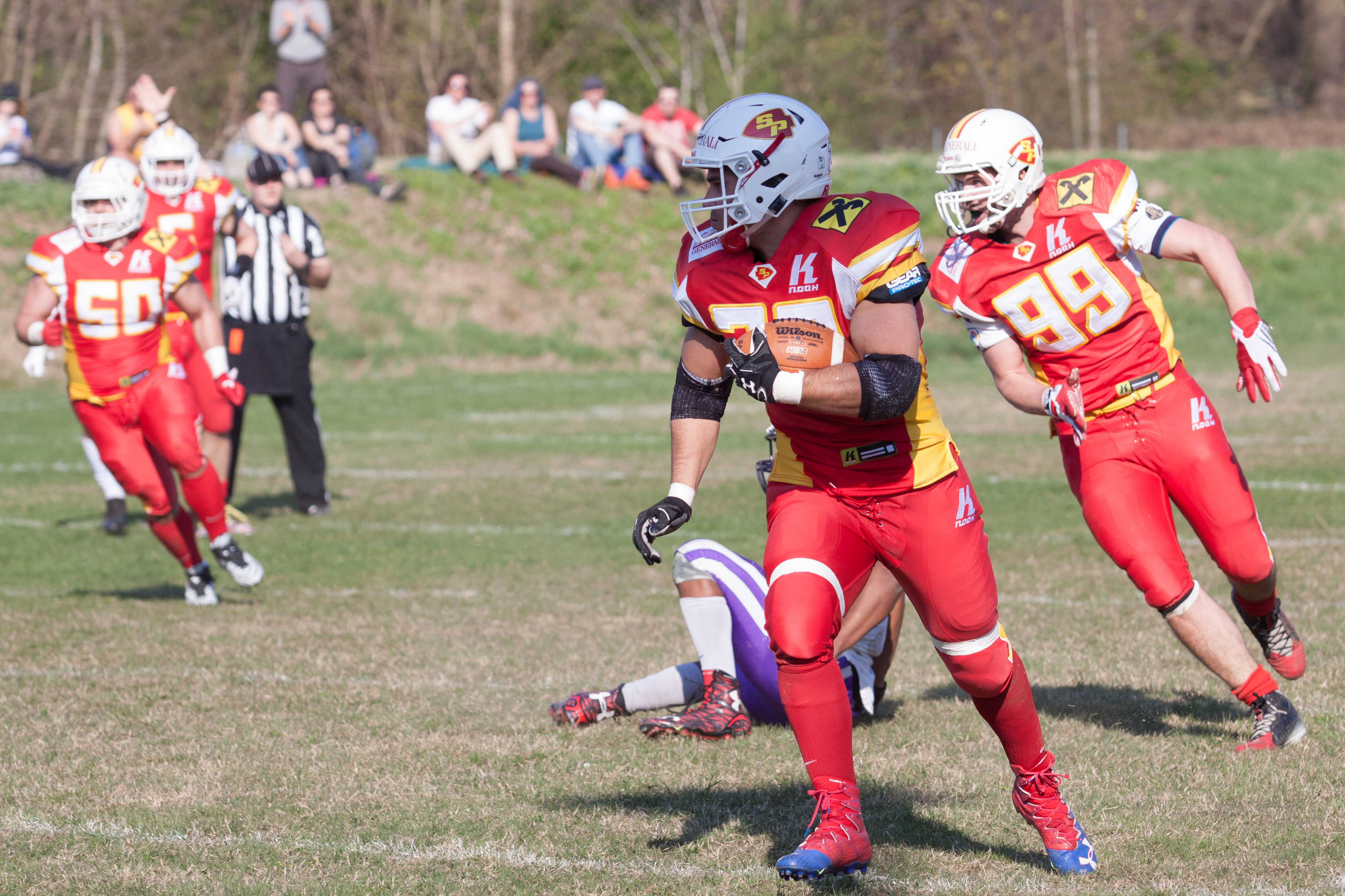 Im zweiten Spielabschnitt konnten die Invaders dann endlich zeigen was in ihnen steckt und die Überlegenheit die am Feld zu sehen war auch am Scoreboard umsetzen. Eine sehr harte Entscheidung der Schiedsrichter führte laut Regelwerk zum Ausschluss vom Herz der St. Pöltner Defensive, Andreas Inzinger und es war als hätten die Rot-Goldenen diesen Weckruf auch irgendwo gebraucht. Spielstand nach dem dritten Viertel 28:15.