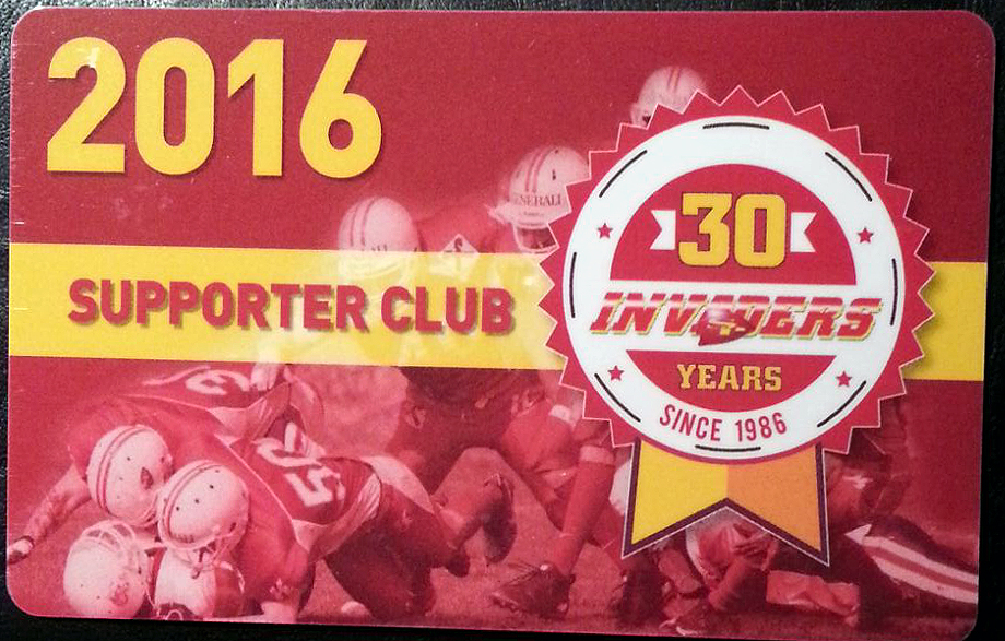 Fast zeitgleich mit den neuen Kalendern sind auch die neuen Jubiläums-Supporter Club Karten eingetroffen. Unterstützt auch ihr diverse Projekte die im Verein 2016 anfallen, bleibt über den Newsletter Up-to-Date und erhaltet freien Eintritt auf allen Veranstaltungen der Generali Invaders und das alles nur um einmalige 50€.